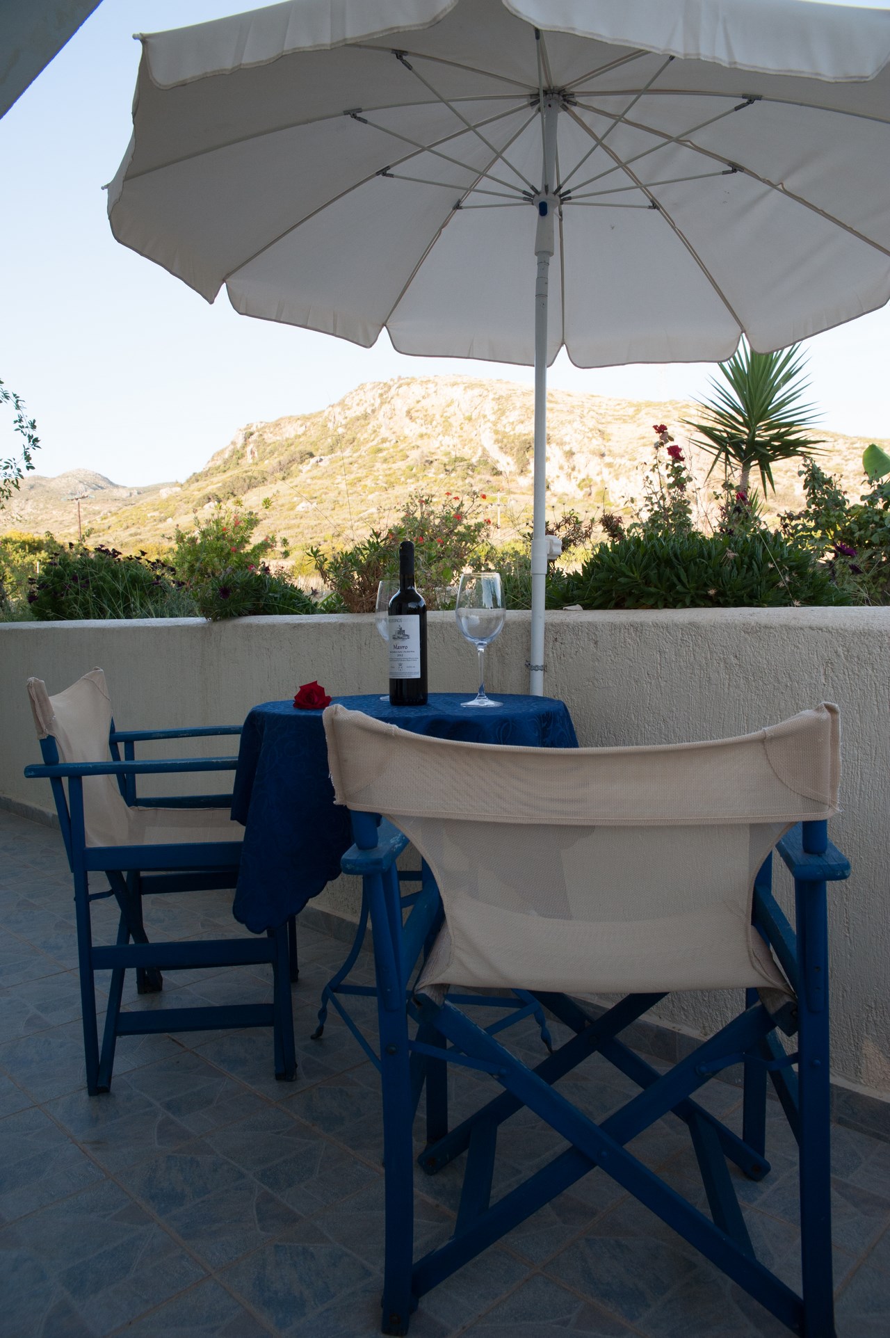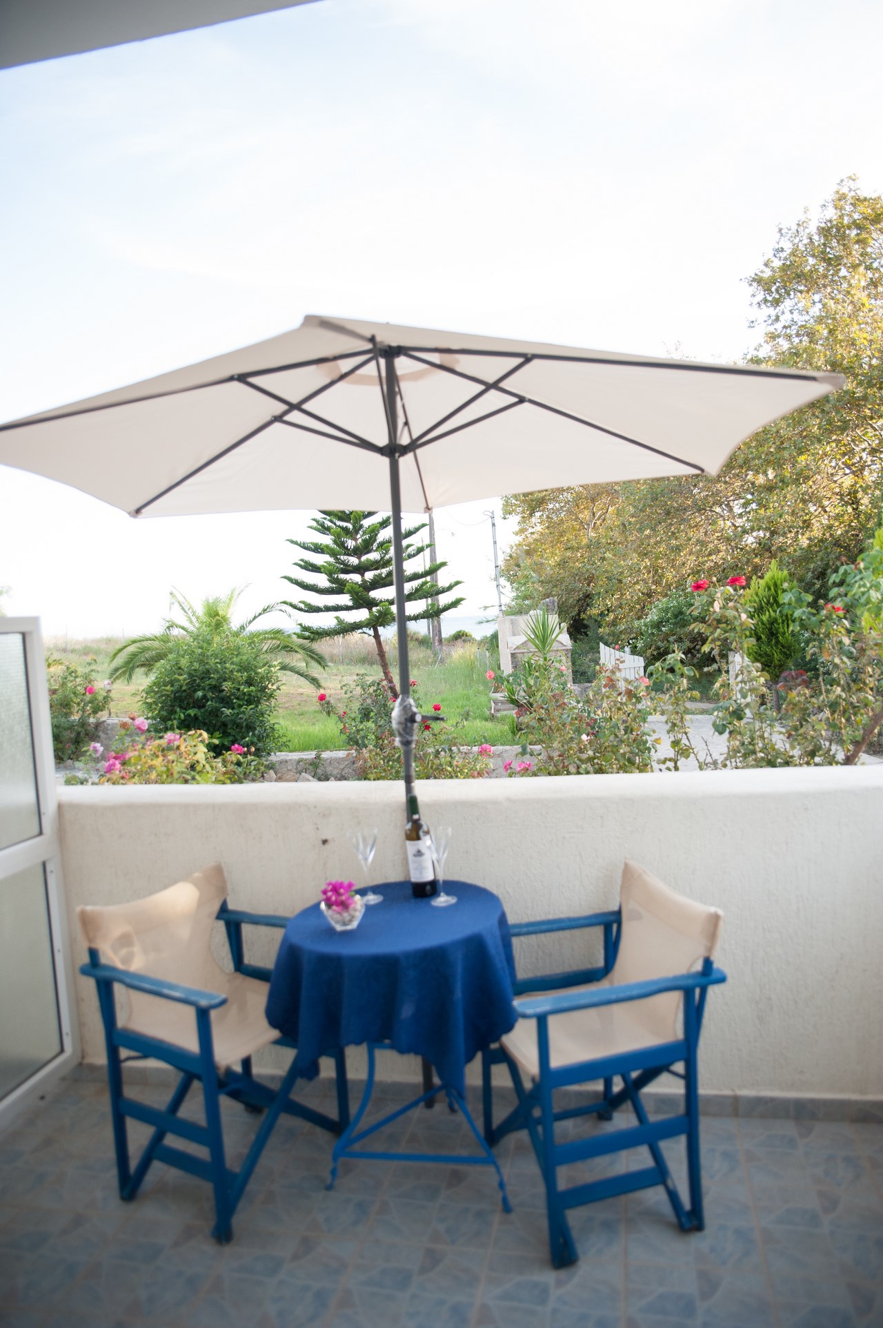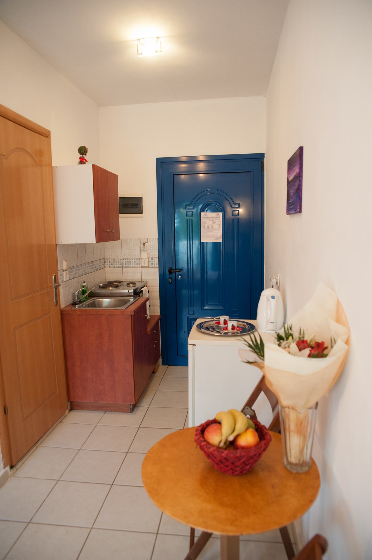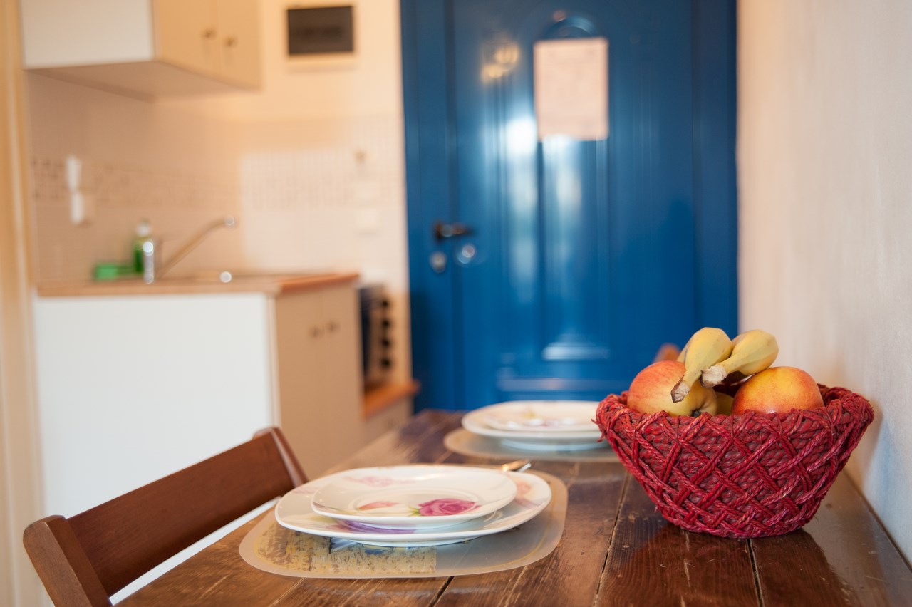 The studio on the first floor sleeps 2 persons in a double bed. The studio has en suite shower and w.c. Furthermore, it has a private furnished balcony with a sea view, a simple kitchenette for preparation of snacks and light meals.
