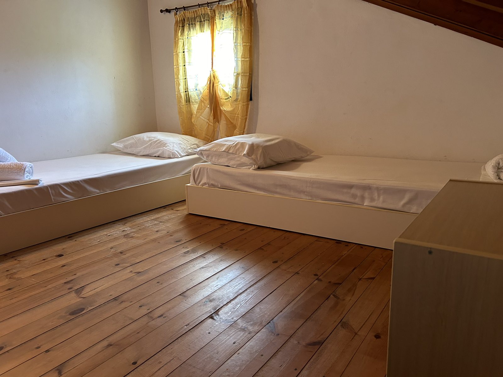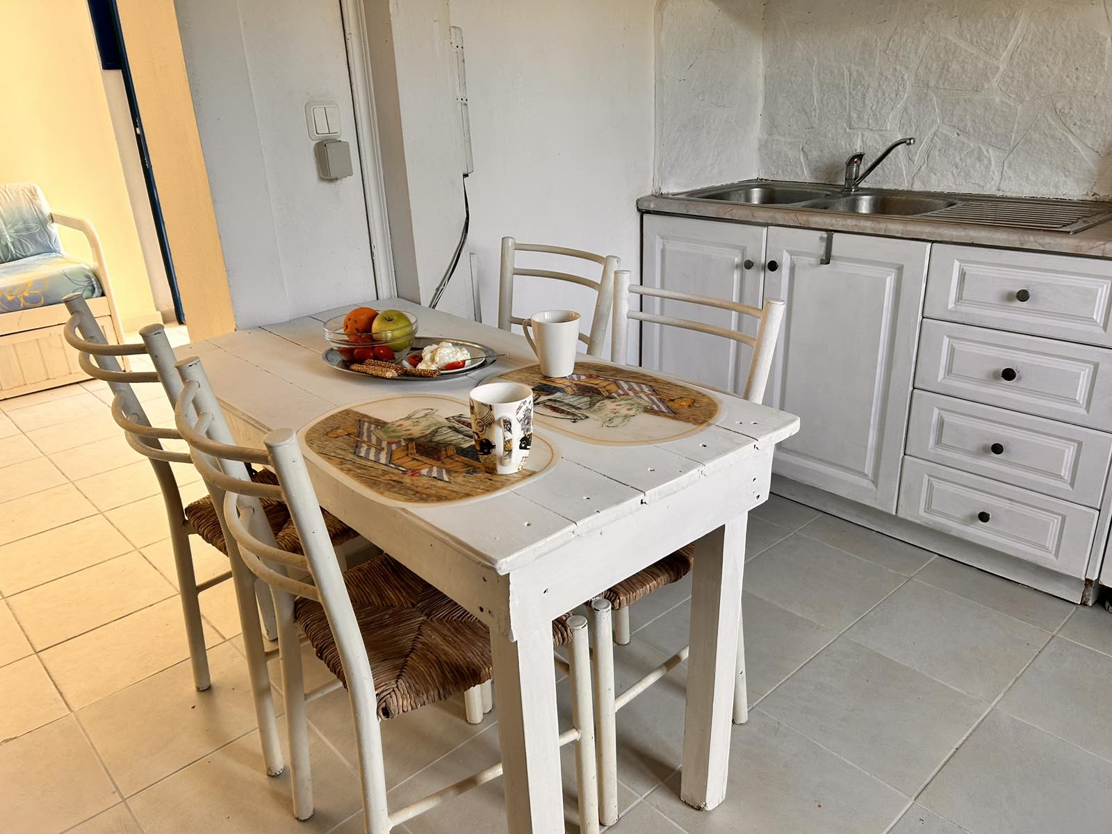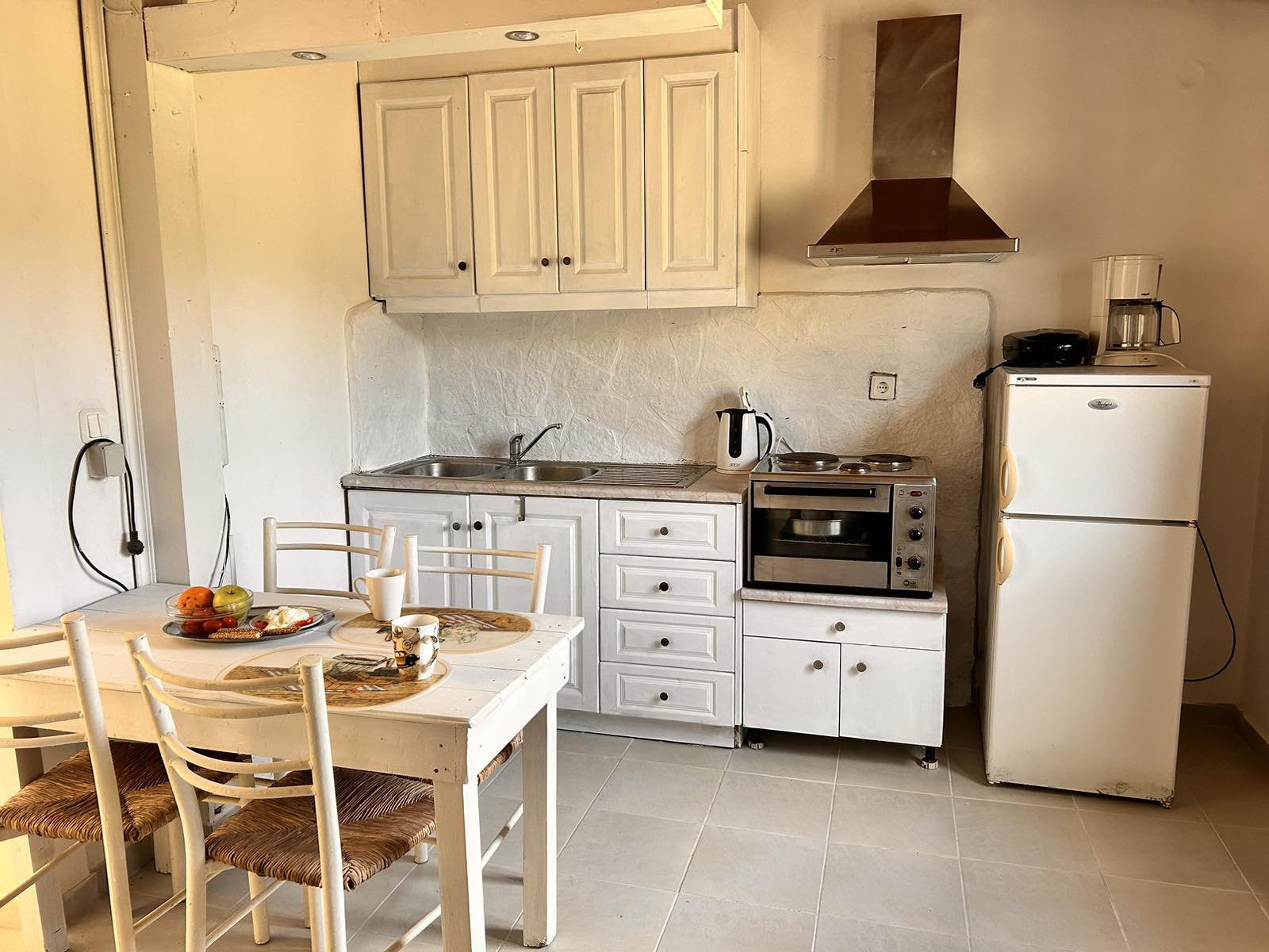 The studio on the first floor sleeps 2 persons in a double bed. The studio has en suite shower and w.c. Furthermore, it has a private furnished balcony with a sea view, a simple kitchenette for preparation of snacks and light meals.