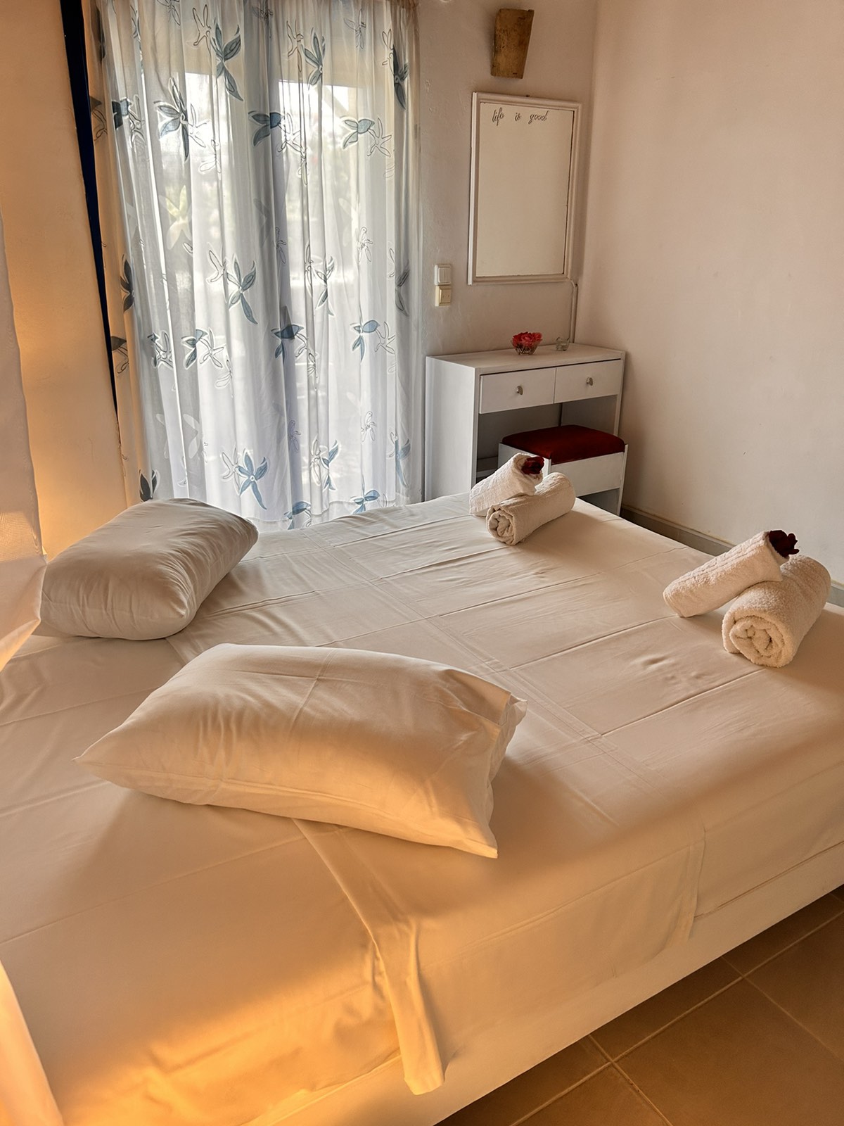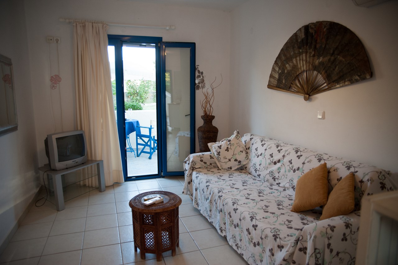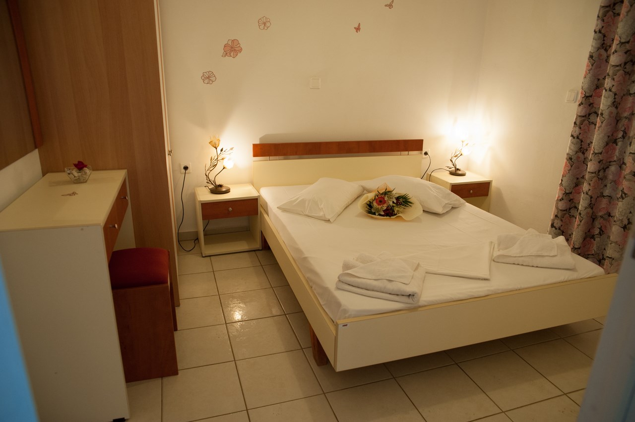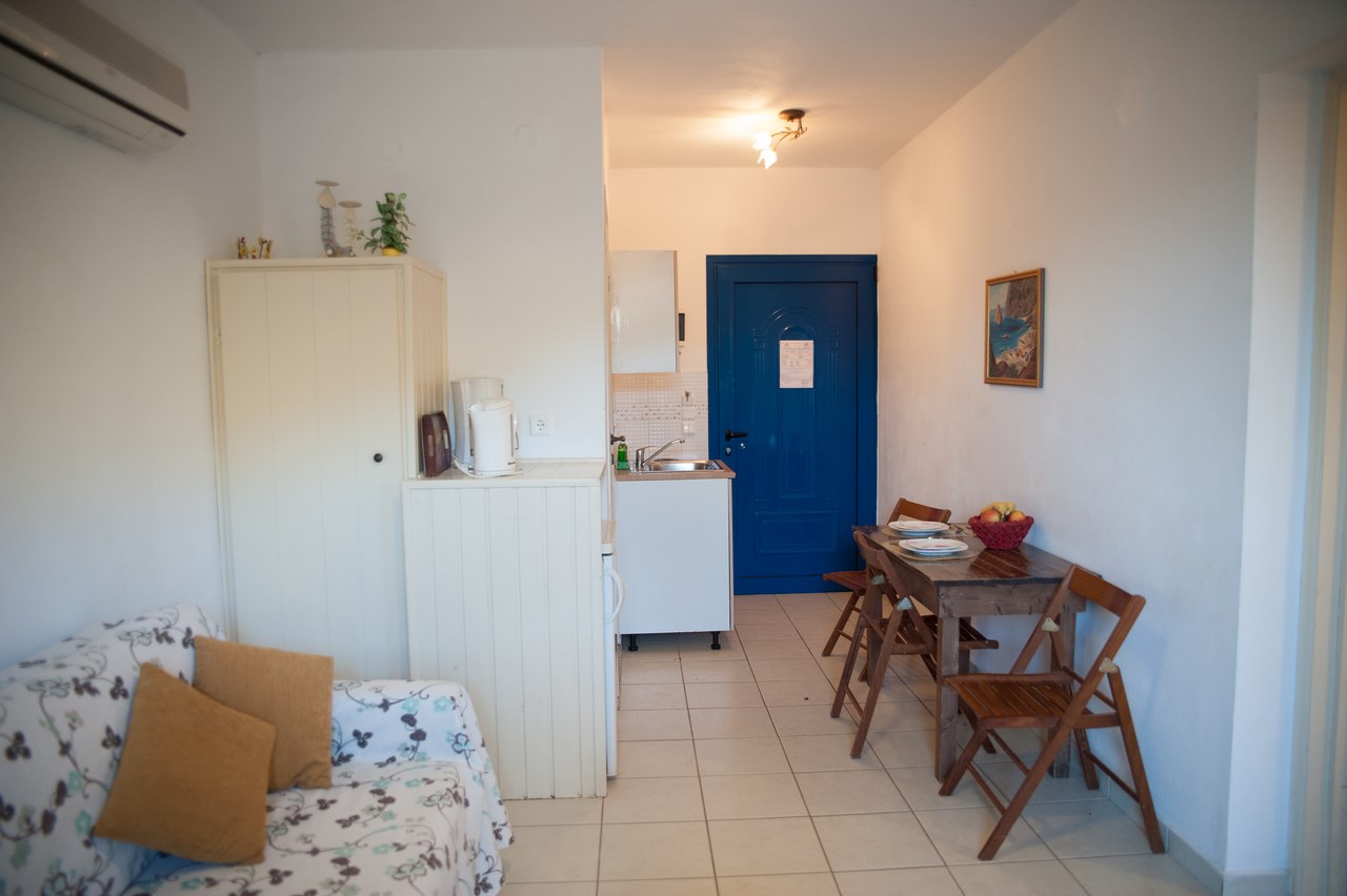 The studios sleep 2 persons in a double bed. Each studio has en suite shower and w.c All studios have private furnished balcony with sea view.Studios are equipped with simple kitchenette for preparation of snacks and light meals.